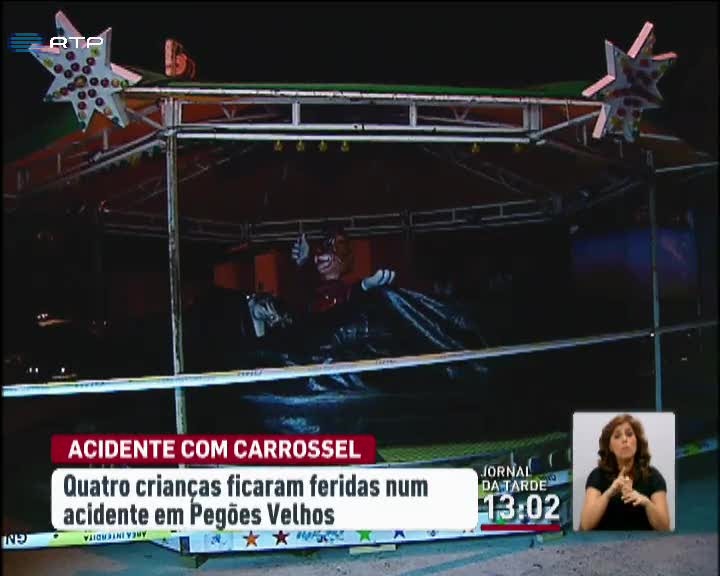 Um acidente num carrossel provocou ferimentos em quatro crianças, em Pegões Velhos, no Montijo. Os menores foram arrastados pela estrutura de um barco, que se soltou. Três das crianças quais foram levadas para o hospital. Duas já tiveram alta e outra ficou internada em observações.
