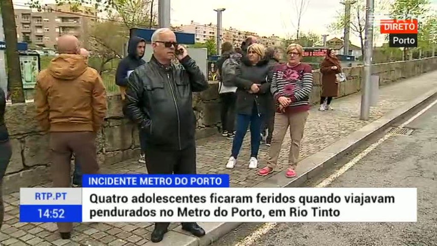 Quatro adolescentes, rapazes com idades entre os 15 e os 16 anos, ficaram feridos quando viajavam pendurados na parte traseira de uma carruagem, no Metro do Porto, em Rio Tinto.