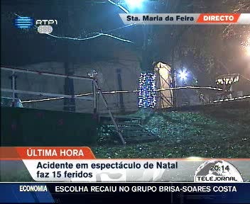 Quinze pessoas ficaram feridas sábado à tarde no parque temático "Terra dos Sonhos", em Santa Maria da Feira, num acidente resultante da queda de uma bancada na tenda onde 497 espectadores assistiam ao espectáculo "Sonho da Lua".