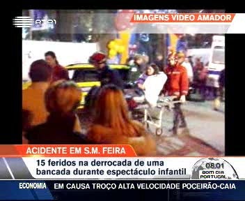 A queda da bancada deu-se cerca das 17h35 e deu origem a uma operação de socorro que envolveu 32 homens das corporações de bombeiros da Feira, Arrifana e Lourosa, para além de agentes da PSP e operacionais das viaturas médicas dos hospitais de Gaia e Espinho.