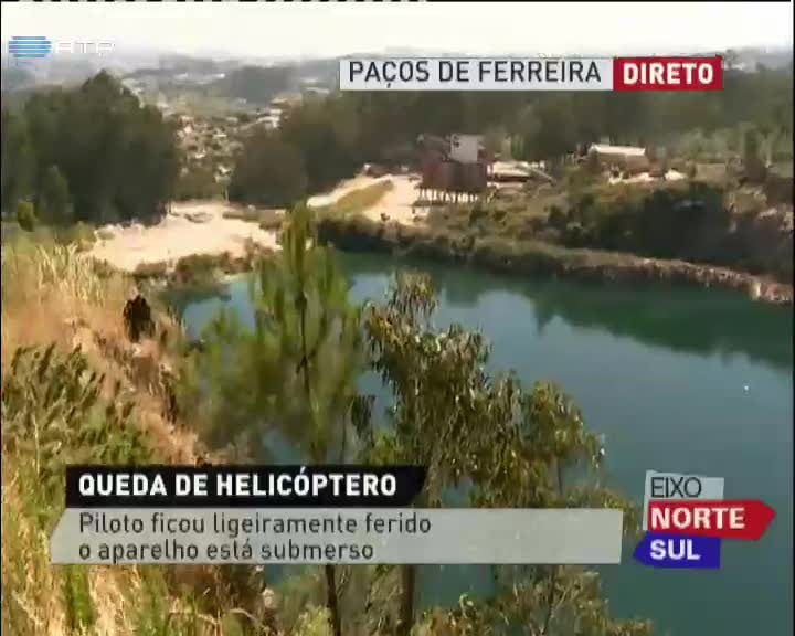 Um helicóptero da Proteção Civil caiu em Lamoso, Paços de Ferreira, provocando um ferido ligeiro. A aeronave está ainda submersa no local do acidente, sendo que o piloto já foi, entretanto, resgatado. O veículo estava a reabastecer de água numa lagoa para combater um incêndio em Sanfins, quando, devido a uma alegada falha do motor, caiu. Em direto do local, a jornalista da RTP apurou junto da população o que terá provocado este acidente.