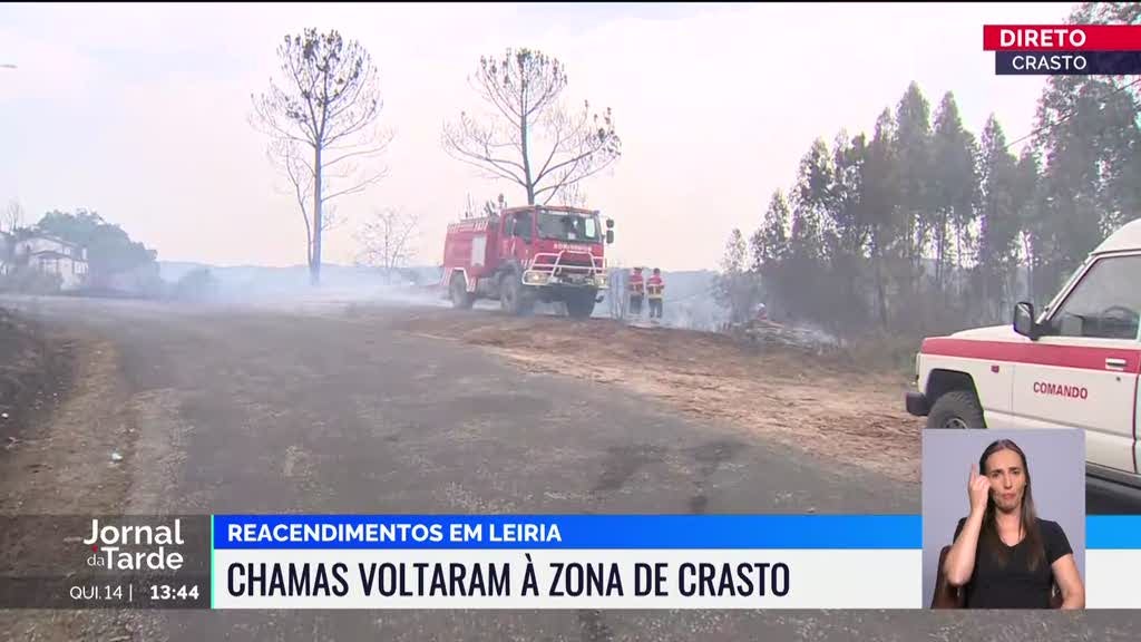 Há notícia de um reacendimento na freguesia de Crasto, em Leiria. As chamas estiveram muito próximas de habitações e de terrenos agrícolas, mas já foram controladas pelos bombeiros.