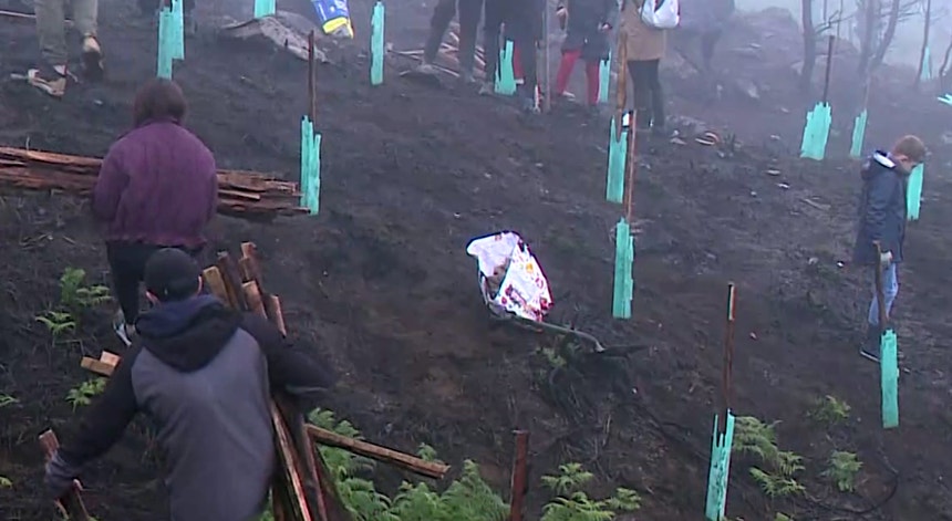Cento e cinquenta voluntários estão a plantar árvores na Serra do Alvão, atingida por um grande incêndio em agosto.