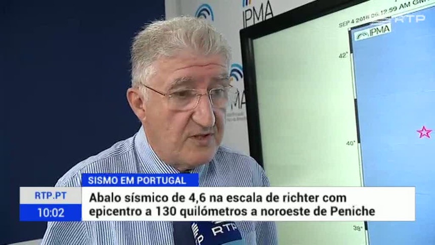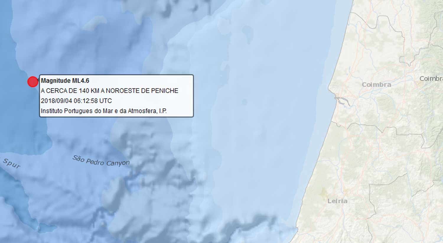 Foi registado um abalo sísmico de 4,6 na escala de Richter, com epicentro a cerca de 130 quilómetros a noroeste de Peniche.
