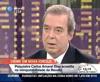 O psiquiatra Carlos Amaral Dias acredita que Renato Seabra pode ser considerado inimputável e não ir a julgamento. Na Grande Entrevista - ontem na RTP - o também psicanalista interpretou este caso, tendo em conta os dados disponíveis e afirmou que o jovem terá tido uma psicose reactiva.