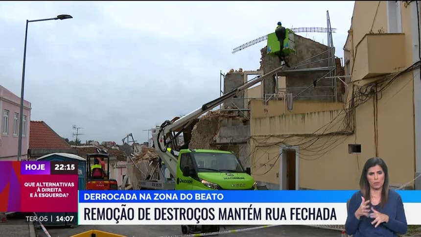 Por esta altura, a prioridade é demolir, de forma controlada, o que restou da estrutura lateral. O edifício que desabou, entre dois prédios, estava em obras de reabilitação.