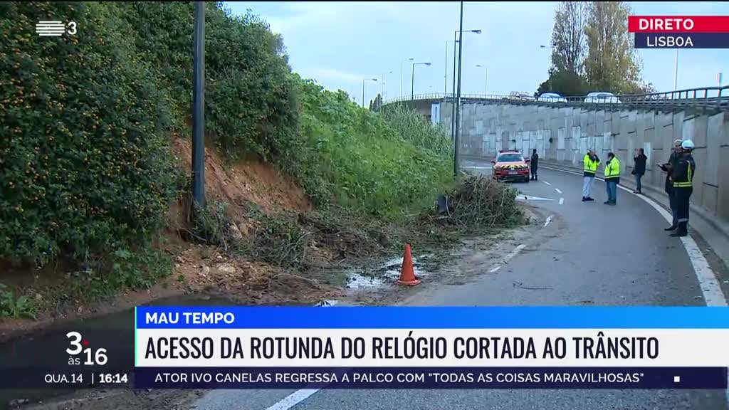 A Câmara de Lisboa deu ordem para o corte imediato de um acesso na rotunda do relógio, em Lisboa, por motivo de derrocada. Os bombeiros aguardam uma avaliação por parte de engenheiros para calcular risco de derrocada.