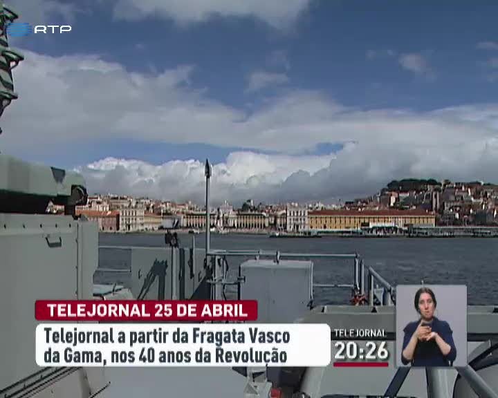 Já está a decorrer uma grande operação informativa da RTP para assinalar os 40 anos do 25 de abril. Um dos palcos desta operação está instalado em Grândola, onde se encontra já o repórter Hélder Silva. Outro grande palco é a fragata Vasco da Gama, mesmo no meio do Tejo.