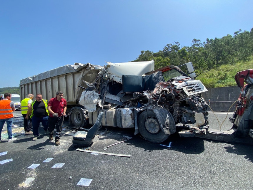 Sete feridos ligeiros na A8. Camião colidiu com autocarro escolar