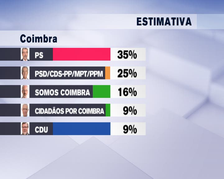 Em comparação com os resultados de 2013, o Partido Socialista deverá conseguir manter praticamente a mesma percentagem de votos que foi alcançada quando Manuel Machado regressou à câmara de Coimbra, ao fim de 12 anos.