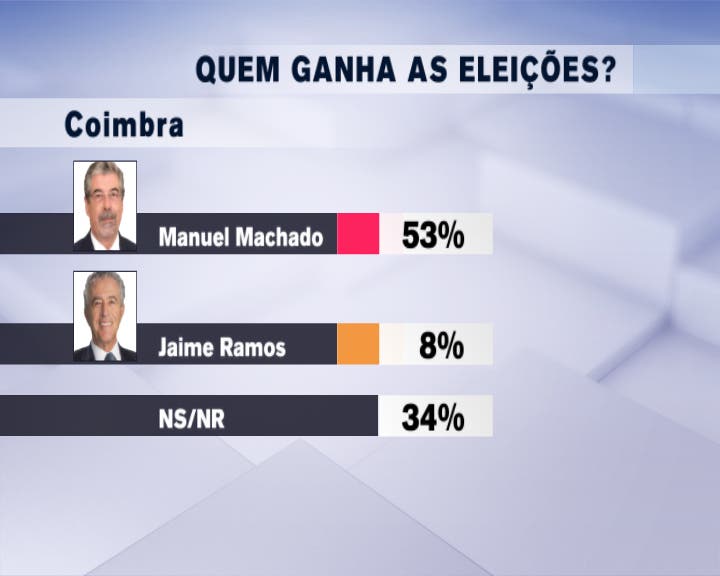 Independentemente das intenções de voto ou preferências, a grande maioria dos eleitores considera que será mesmo Manuel Machado o vencedor das eleições, incluindo os eleitores da coligação “Mais Coimbra”. Apenas oito por cento acredita na vitória do candidato da coligação liderada pelo PSD.