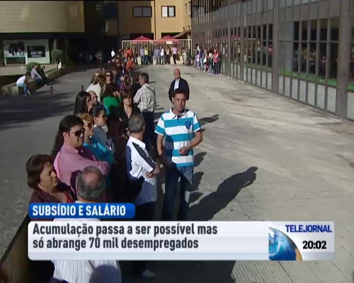 A partir de hoje, quem recebe subsídio de desemprego pode passar a acumular uma parte da prestação com um salário. A acumulação dura, no máximo, um ano e só pode ser atribuída a desempregados que estejam inscritos nos centros de emprego há, pelo menos, seis meses. Isto significa que, na prática, a medida só pode ser aplicada a cerca de 70 mil desempregados.