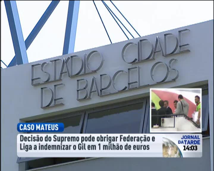 A Liga e a Federação podem vir a indemnizar o Gil Vicente em um milhão de euros devido ao Caso Mateus. O Supremo Tribunal Administrativo confirmou a decisão do tribunal de segunda instância, que dava razão ao clube de Barcelos. O Gil deverá assim receber uma indemnização pelos danos desportivos. O caso Mateus remonta a 2006 e foi desencadeado pela recusa da Federação e da Liga da inscrição no Gil Vicente do angolano Mateus, que tinha jogado como profissional no Felgueiras, mas tinha passado para a condição de amador no Lixa.