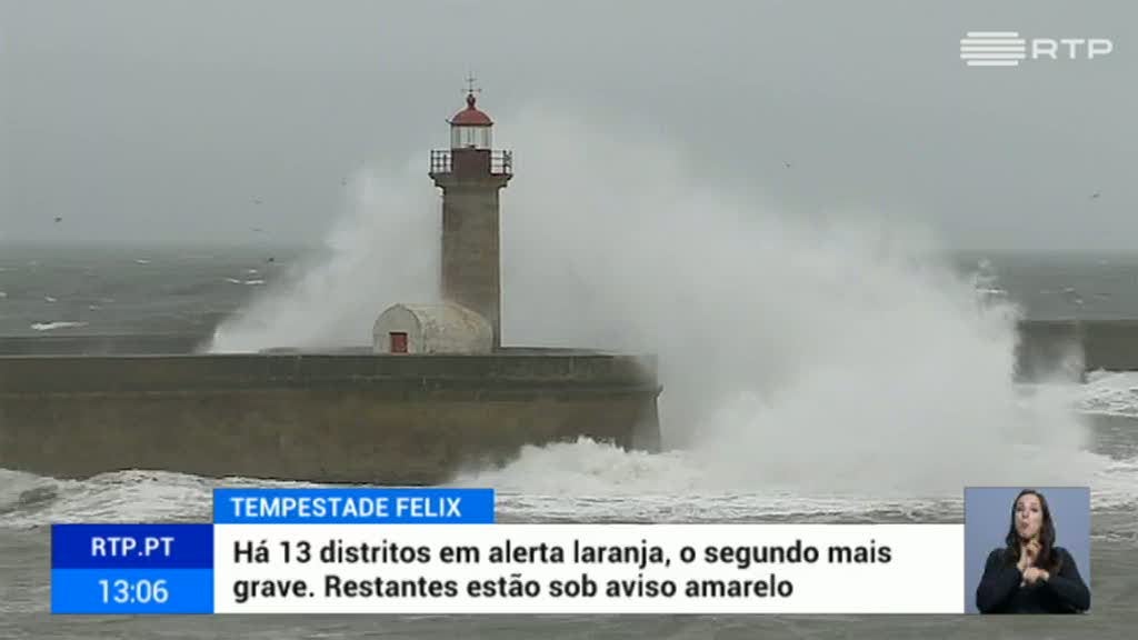 A tempestade Félix deixou 13 distritos do continente em alerta laranja, o segundo mais grave numa escala de quatro. Mas a ameaça do mau tempo estende-se a todo o país.