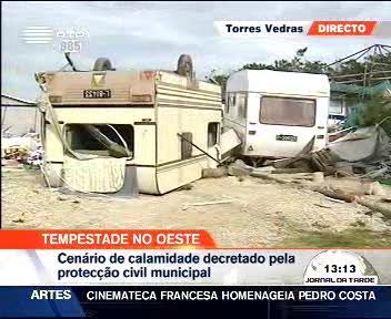 O estado do Parque de Campismo de Santa Cruz ilustra a força do temporal que esta noite se abateu sobre o território nacional.