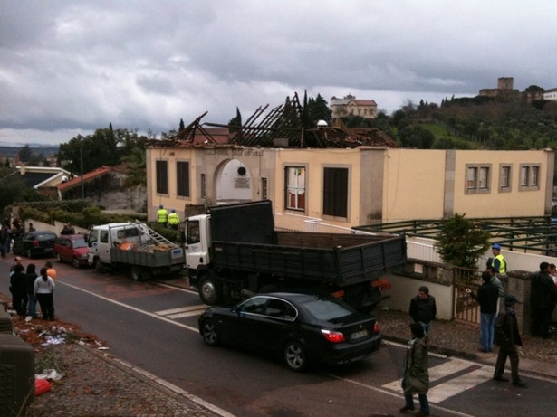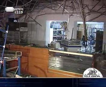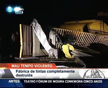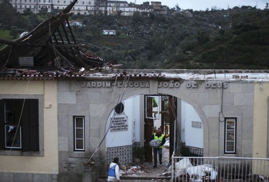 Segundo a Agência Lusa, a chuva intensa e o vento forte provocou ao início da tarde de hoje o desabamento do telhado do jardim-escola João de Deus, em Tomar, provocando feridos ligeiros. Ao todo, mais de 150 casas ficaram sem telhado e um jardim de infância ficou parcialmente destruído.