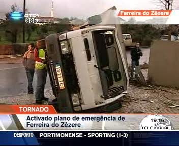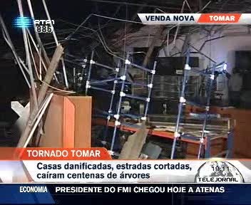 Um tornado atingiu hoje a cidade de Tomar, causando prejuízos avultados, segundo vários relatos locais. Ao final da tarde, a coordenadora do instituto Nacional de Emergência Médica (INEM) confirmava que 36 pessoas registaram ferimentos, 19 das quais crianças.
