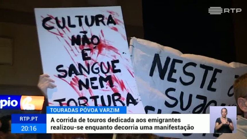 Dezenas de pessoas manifestaram-se contra as touradas na Póvoa de Varzim. O protesto decorreu em frente à praça de Touros, onde estava a decorrer a tourada de homenagem aos emigrantes. A assembleia municipal da Póvoa decretou o fim dos espetáculos taurinos na cidade, mas já há uma corrida de touros marcada para o próximo ano.