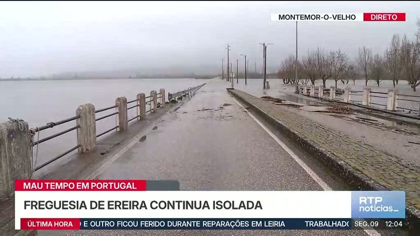Em santarém, a estrada nacional 365 continua submersa. A estrada que faz a ligação entre a ponte de Reguengo e Valada no Cartaxo continua interdita.