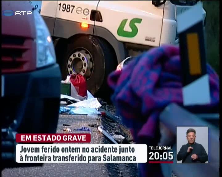Está internado e em estado grave o jovem que ficou ferido no acidente junto à fronteira de Quintanilha em Bragança. O jovem de 16 anos foi transferido para os cuidados intensivos do Hospital Universitário de Salamancana em Espanha. Está em observação, com prognóstico reservado. Foi uma das vítimas do acidente onde morreram outros três portugueses.. O acidente resultou da colisão frontal entre um ligeiro e um camião. Os mortos são um condutor, e duas raparigas, de 17 e oito anos.