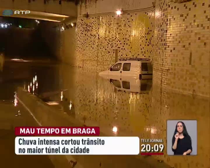 O temporal provocou problemas em Braga. O maior túnel da cidade foi cortado ao trânsito durante a noite.