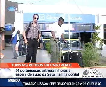 Os turistas portugueses ficaram retidos na ilha cabo-verdiana, uma espera de nove horas pelo avião da SATA.