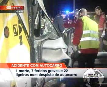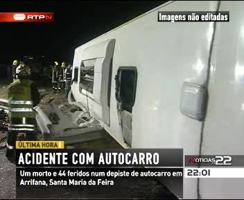 Um acidente com um autocarro provocou ao início da noite deste sábado a morte a uma mulher e ainda mais sete feridos graves e 20 ligeiros. Tudo leva a crer que o autocarro, que transportava 36 passageiros, se tenha despistado sozinho já que nenhum outro veículo esteve envolvido. O excesso de velocidade poderá estar na origem do despiste.