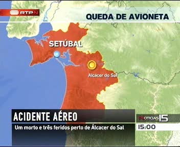 Uma pessoa morreu e três ficaram feridas, uma das quais com gravidade em virtude da queda de uma avioneta na Herdade da Palma, situada na localidade de Fangarifau, perto da área de serviço de Alcácer do Sal. O ferido grave foi levado para Lisboa, enquanto os ligeiros para Setúbal. A queda da avioneta provocou um incêndio.