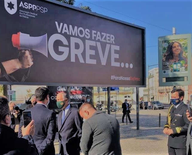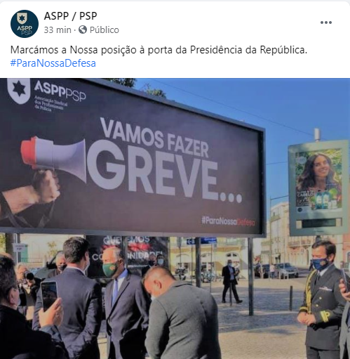 A Associação Sindical dos Profissionais de Polícia colocou esta quinta-feira um cartaz junto à Presidência da República para alertar Marcelo Rebelo de Sousa para a falta de resposta do Governo na resolução dos problemas dos polícias.