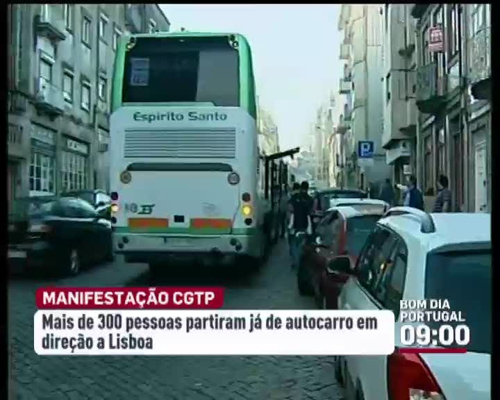 A manifestação deste sábado poderá ser uma das maiores de sempre, a CGTP não avança com números, mas espera uma grande adesão. A Central Sindical acredita que o protesto vai reunir milhares de pessoas nas ruas de Lisboa, contra o aumento de impostos e o congelamento de salários. Do distrito do Porto partiram, esta manhã, 123 autocarros e na a partida para Lisboa, foram muitos os que quiseram mostrar a indignação pelas políticas do Governo.