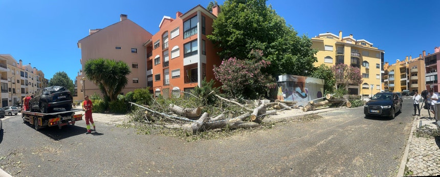 Vários carros danificados. Vento forte derrubou árvores em Carcavelos