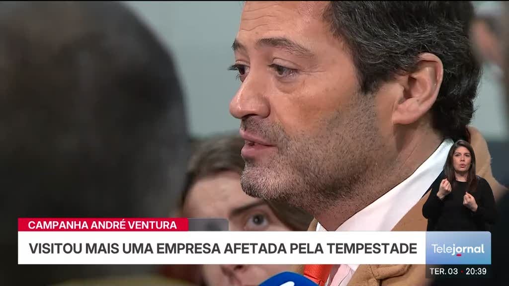 André Ventura visitou uma empresa afetada pela tempestade em Torres Vedras. O candidato criticou Marcelo Rebelo de Sousa por se ter ausentado do país na viagem oficial que fez ao Vaticano nos dias seguintes à tempestade.