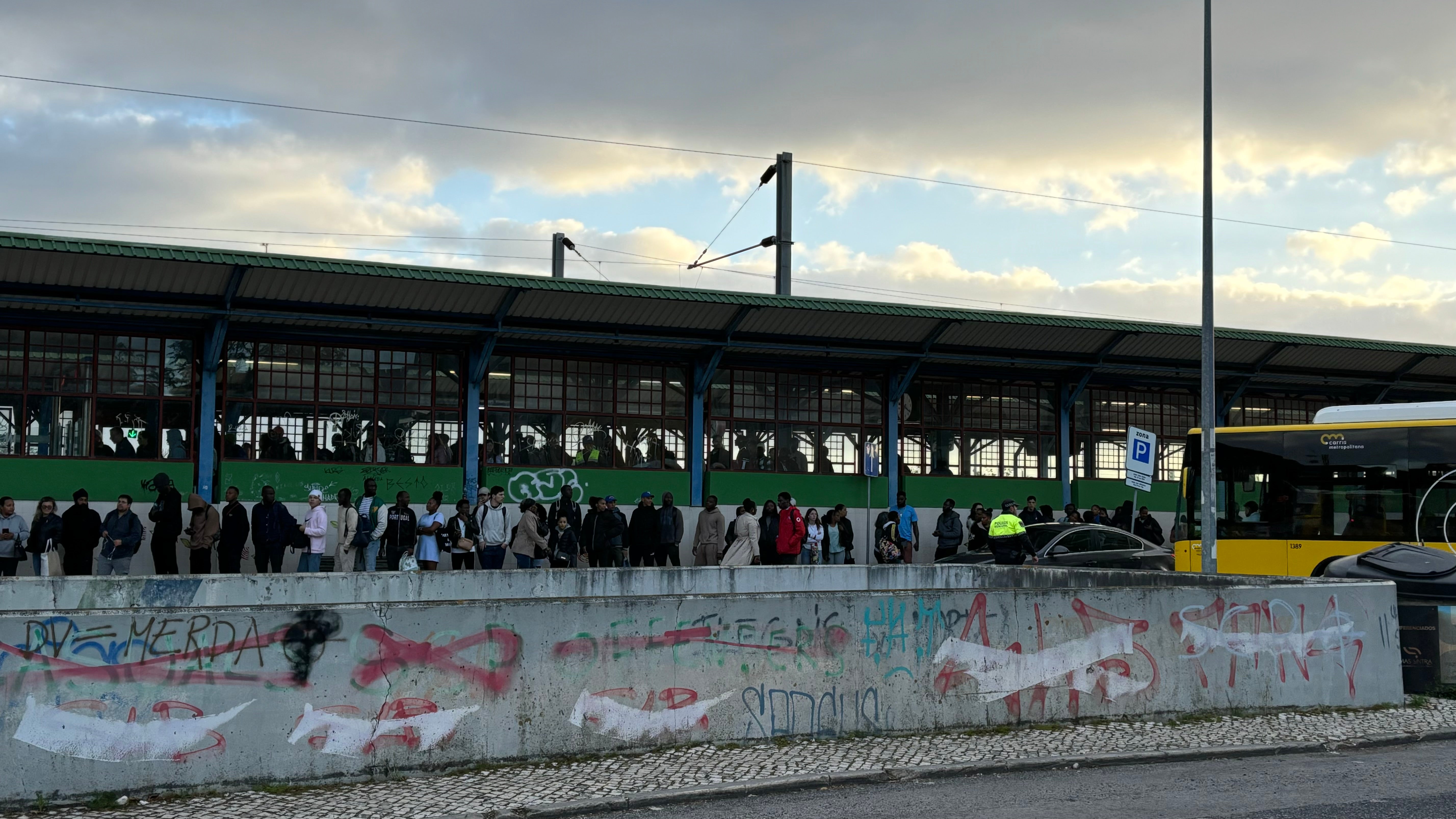 A fila principal acusa nervosismo. "Vão chegar as pessoas que não respeitam a fila", diz um homem enquanto aponta para a saída da estação de comboios. Há novo passo apressado, para alguns com toque de corrida, porque são quase 6h50: o serviço expresso do 1623 da Carris Metropolitana aproxima-se.