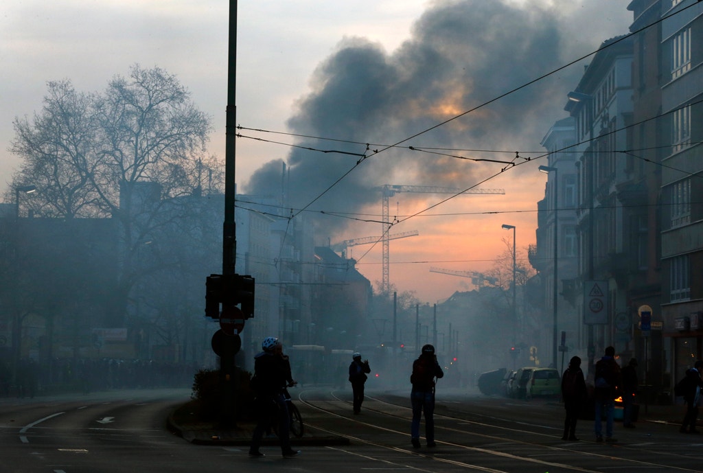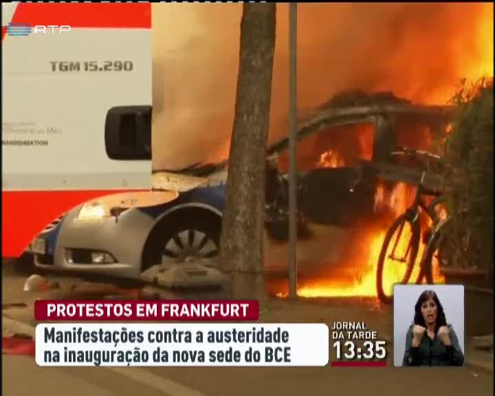 Em Frankfurt, na Alemanha, o movimento Blockupy protestou contra a inauguração do novo edifício do Banco Central Europeu. Os manifestantes incendiaram carros da polícia e provocaram distúrbios em protesto contra a austeridade. Na base da contestação está também a construção da nova sede do BCE, que custou pelo menos 1,3 mil milhões de euros.