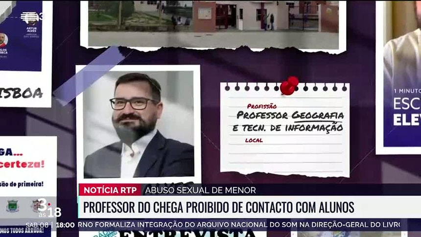 O ex-candidato do Chega à Câmara de Arruda dos Vinhos está acusado do crime de abuso sexual de menor. O militante entretanto expulso do partido é professor numa escola de Alenquer. A RTP teve acesso a um vídeo onde Artur Alves coloca a mão na zona íntima de uma aluna menor em plena sala de aula.