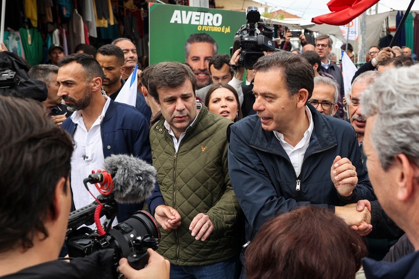 Luís Montenegro e Pedro Nuno Santos estiveram esta manhã na Feira de Espinho. Apesar das visitas estarem marcadas quase para a mesma hora, as caravanas não se chegaram a cruzar.