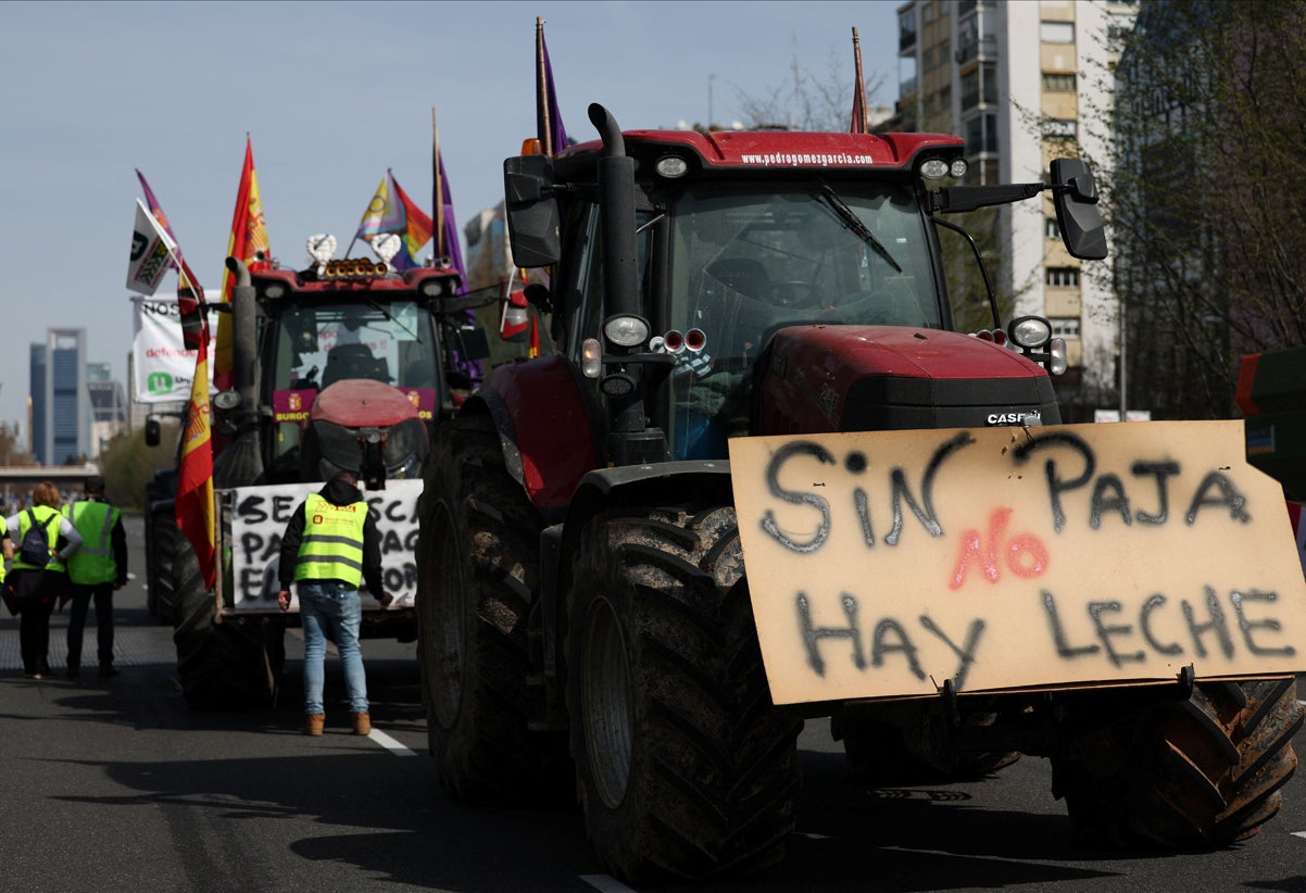 "Sem palha não há leite". Ao diminuir as áreas de pasto para a transição ecológica, o números de bovinos também é reduzido. Protesto dos agricultores em Madrid contra as medidas europeias | Isabel Infantes - Reuters