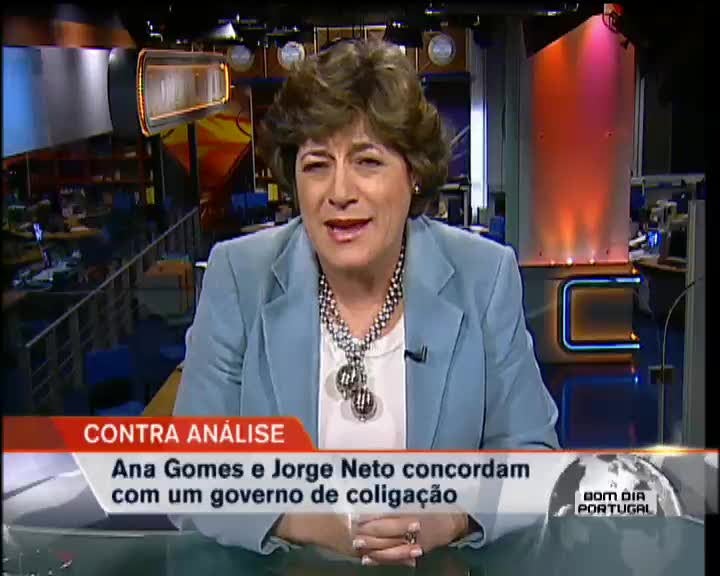 Ana Gomes e Jorge Neto concordam que o próximo governo tem de ser um executivo abrangente, que envolva o PS e o PSD. Ontem à noite, no programa Contra-Análise da RTPN, a eurodeputada disse também que a aposta dos sociais-democratas em Fernando Nobre não representa uma ameaça para o Partido Socialista.