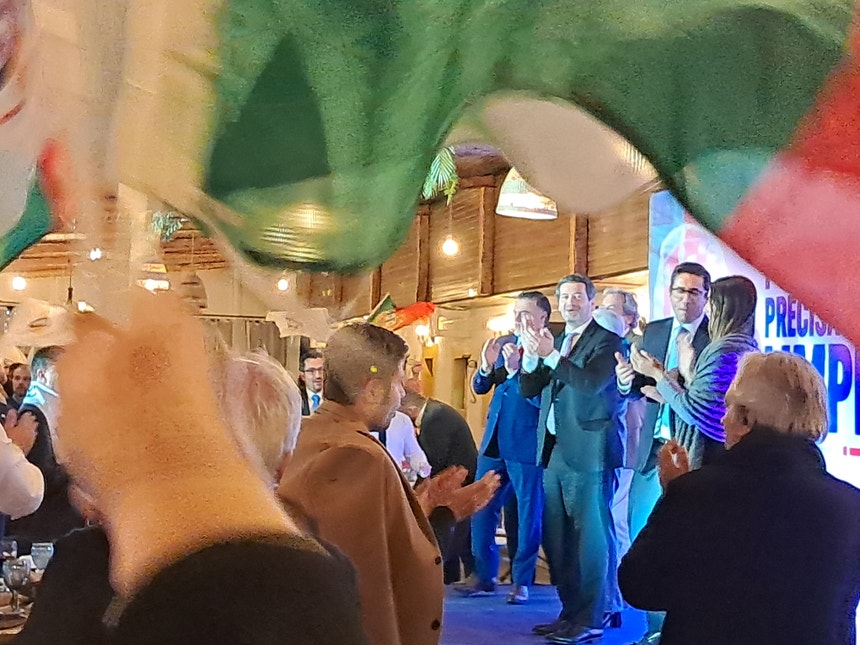 No jantar-comício, em Évora, ficou registado o engano de André Ventura. O líder do Chega queria dizer salve Portugal do socialismo, mas disse “salve Portugal da democracia”.