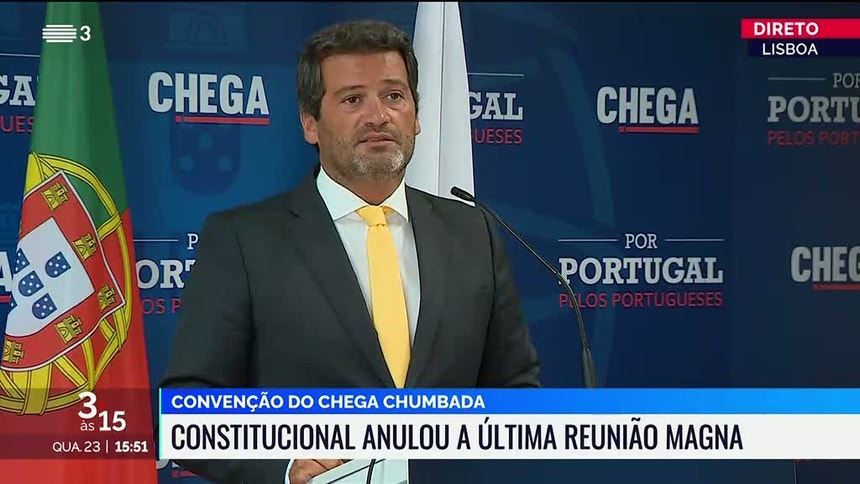O líder do Chega, na conferência de imprensa marcada para anunciar o novo congresso, falou de perseguição ao seu partido e tentativa de "ilegalização na secretaria", deixando críticas à atuação dos juízes do Constitucional, apontando-lhe "má fé" e acusando-os de serem uma "força de bloqueio".