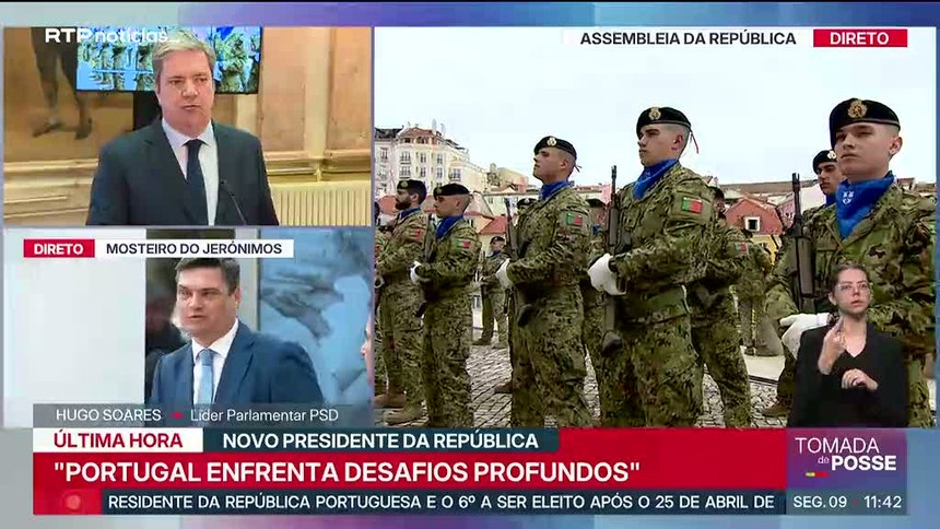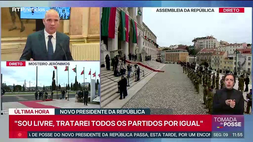 Pelas 10h00, o presidente da Assembleia da República, "segurando o original da Constituição da República Portuguesa, anuncia que o Presidente da República eleito vai prestar a declaração de compromisso".