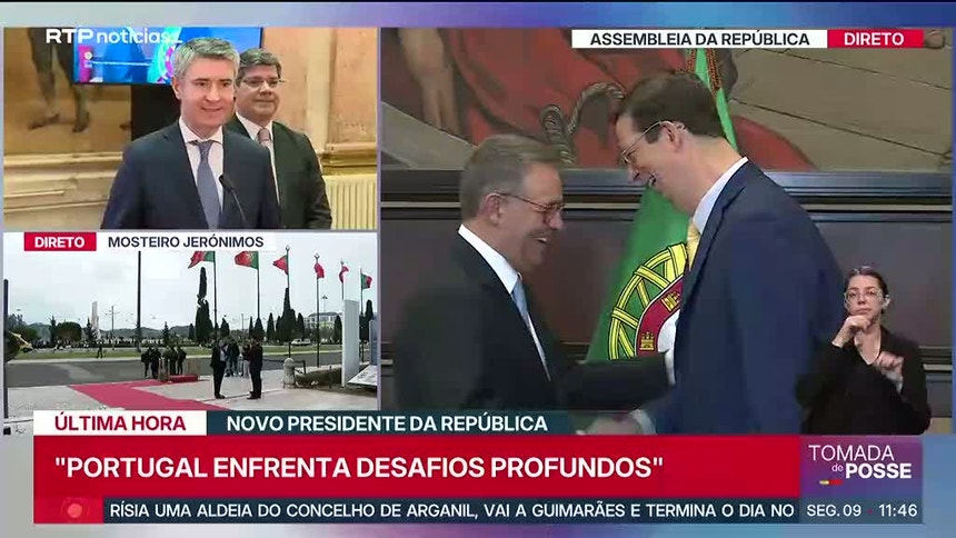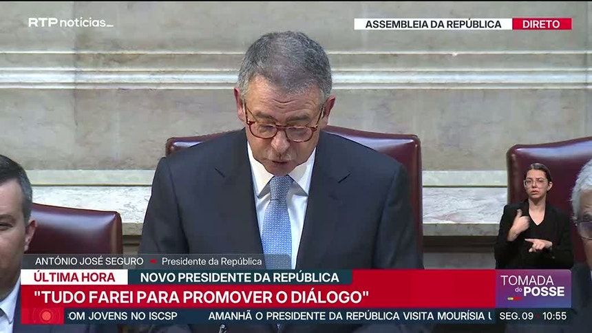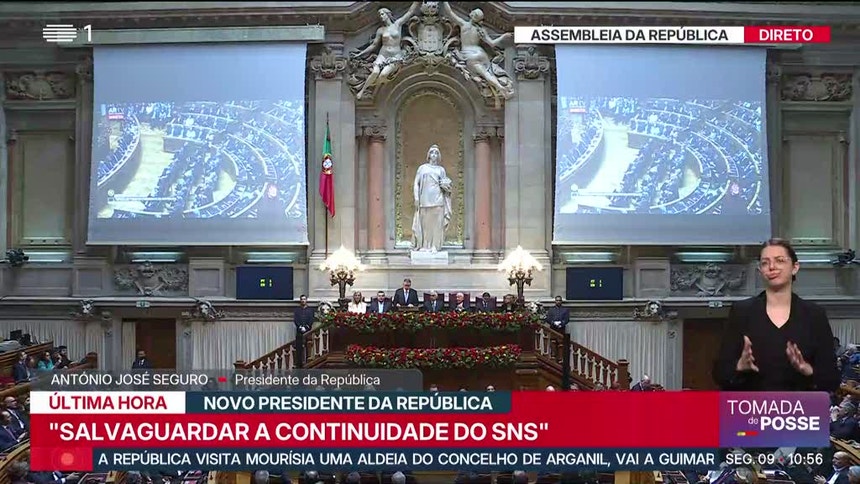 Após a leitura e assinatura do auto de posse, discursa o presidente da Assembleia da República, seguindo-se a primeira intervenção de António José Seguro como Presidente da República.