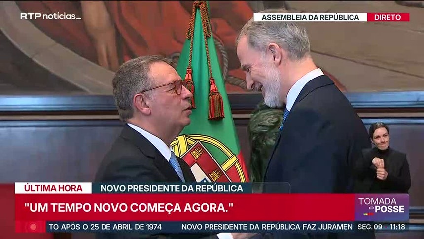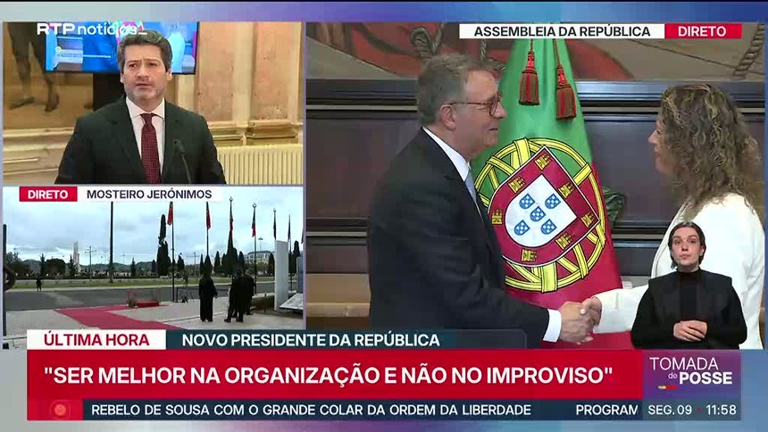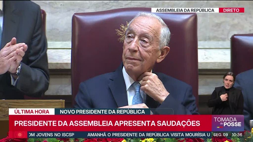 Segundo o cerimonial da sessão solene de tomada de posse, o presidente da Assembleia da República, José Pedro Aguiar-Branco, abrirá a sessão às 09h00, suspendendo-a em seguida, para receber o Presidente da República, o Presidente da República eleito e os convidados.