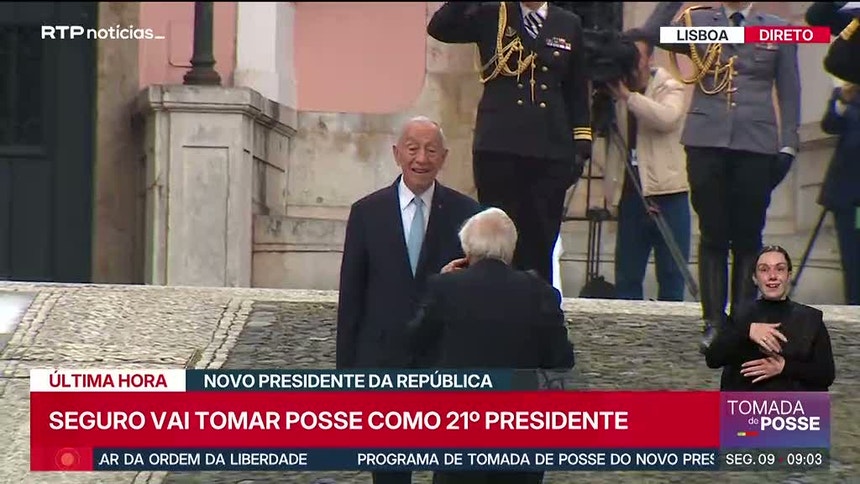 António José Seguro irá chegar ao Palácio de São Bento às 09h30, acompanhado pela mulher, Margarida Maldonado Freitas, e pelos dois filhos. Quinze minutos mais tarde, pelas 09h45, chegará o ainda Presidente da República, Marcelo Rebelo de Sousa.