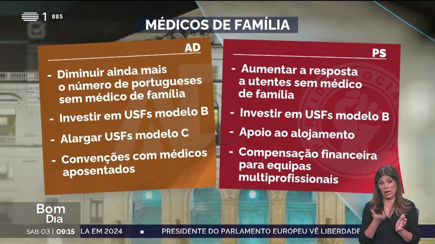 Ainda há um milhão e seiscentas mil pessoas sem médicos de família. Para os partidos de esquerda a solução passa pelo SNS, para os de direita é preciso a colaboração de privados. Os partidos que já estiveram no poder, abandonaram a promessa de um médico de família para todos.