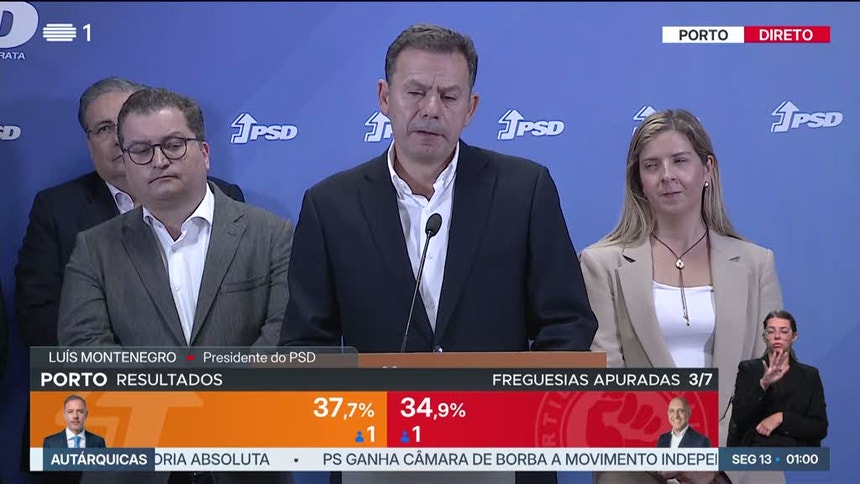 Luís Montenegro diz que o PSD voltou a ser “o maior partido português”, realçando que foi "a primeira vez desde o 25 de Abril que o PSD ganhou câmaras em simultâneo em todos os distritos do país".