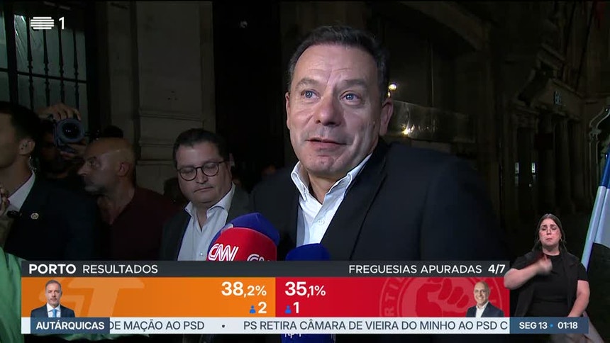 O candidato considerou que a derrota foi por "uma margem curta", recordando que o PS perdeu por "7.300 votos", apresentando-se contra a "maior coligação partidária que alguma vez se candidatou em Gaia (PSD/CDS-PP/IL), liderada por Luís Filipe Menezes.