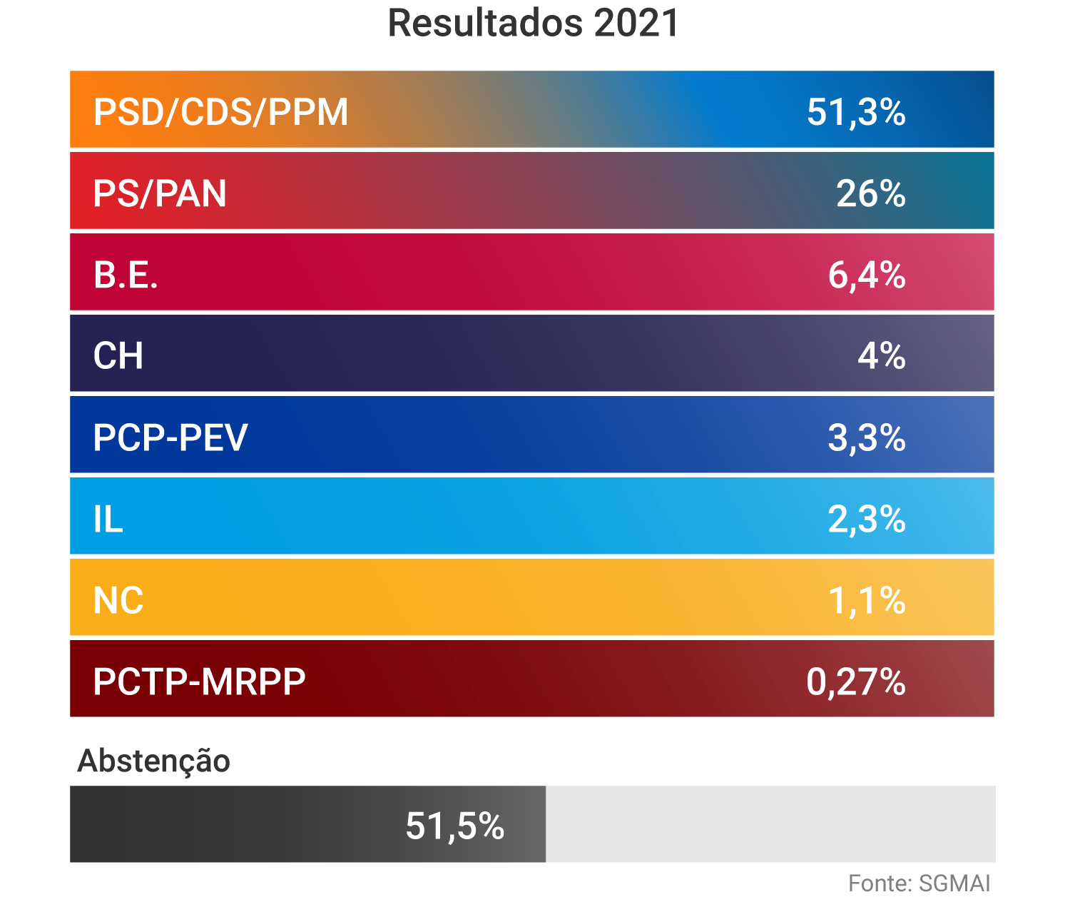 Por fim, são também apresentados os resultados das anteriores eleições autárquicas, realizadas em 26 de setembro de 2021.