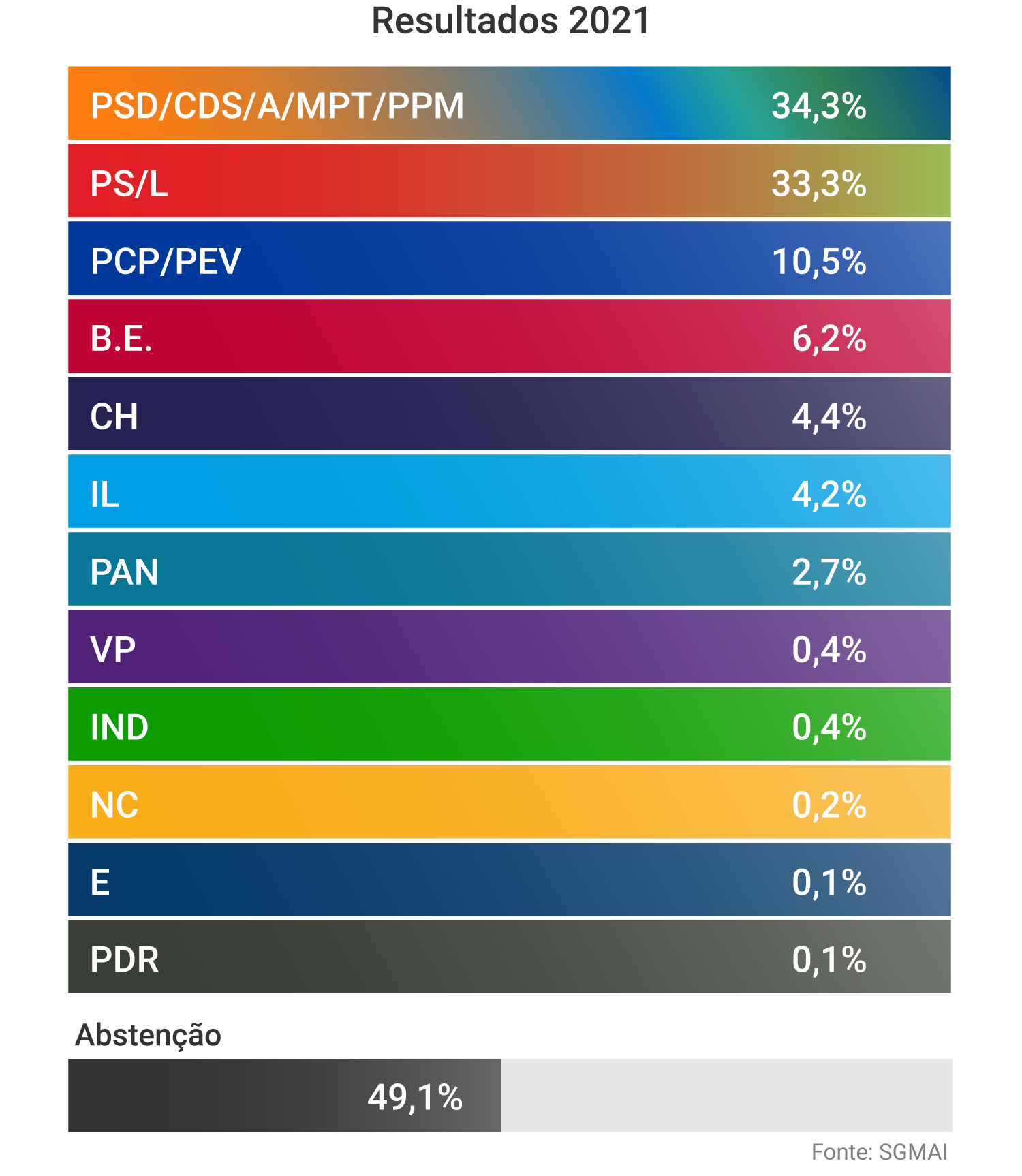 Por fim, são também apresentados os resultados das anteriores eleições autárquicas, realizadas em 26 de setembro de 2021.