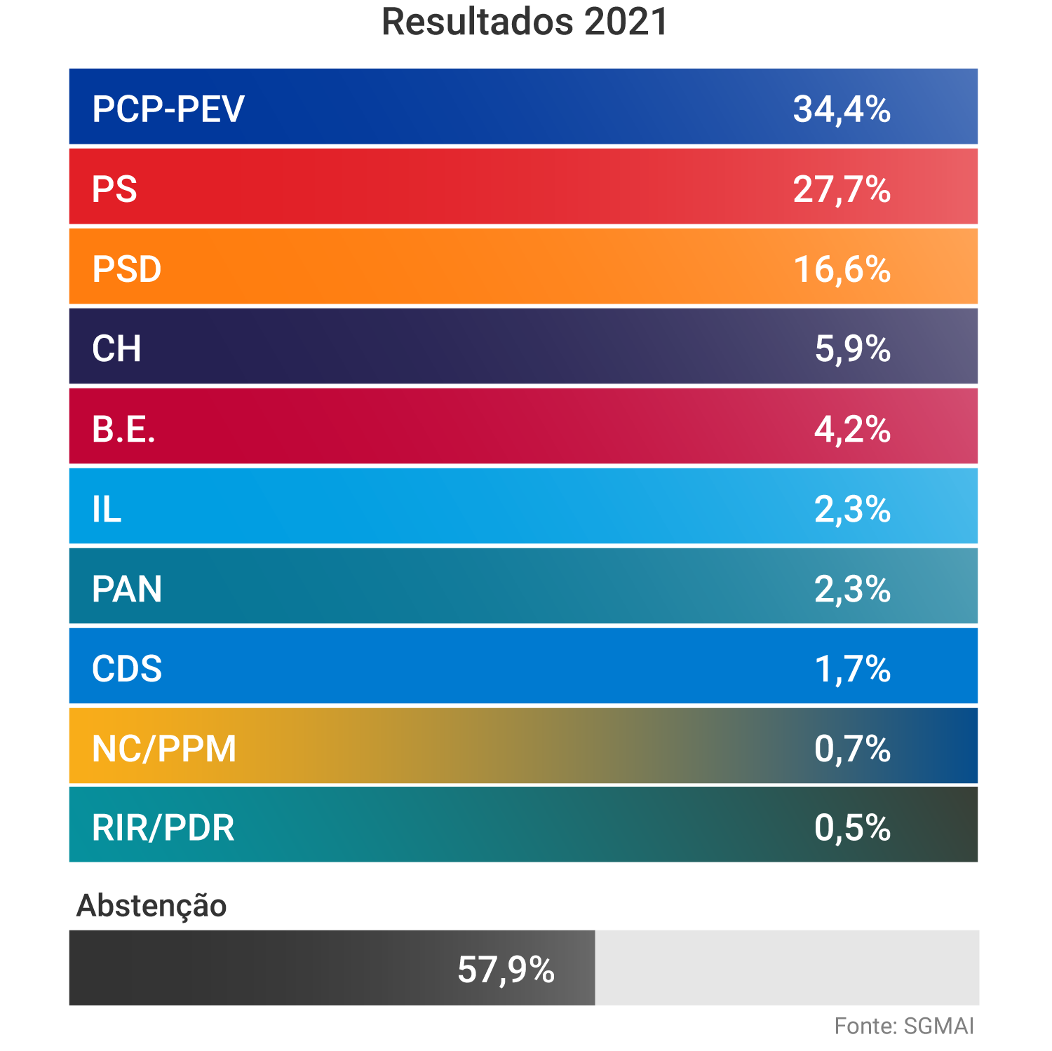 Por fim, são também apresentados os resultados das anteriores eleições autárquicas, realizadas em 26 de setembro de 2021.